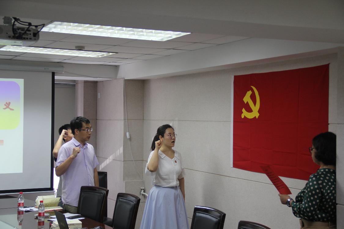 活动首先为预备党员马倩同志举行入党宣誓仪式,全体党员共同在党旗下重温入党誓词,集体庄严宣誓。随后,党总支副书记白元平同志以“重温经典,感悟马克思主义真理力量”为题与大家交流学习体会。白元平同志从学习《共产党宣言》的目的、《共产党宣言》产生的时代背景、《共产党宣言》的学习方法和现实意义等四个方面给全体党员做了精彩的解读,详细介绍了《共产党宣言》产生的历史文化背景,系统梳理了《共产党宣言》的架构和学习脉络,深入浅出地阐释了《共产党宣言》的基本原理。大家围绕主题深入进行了交流,共同探寻了习近平新时代中国特色社会主义思想这一马克思主义中国化最新成果的历史逻辑、理论逻辑和实践逻辑。